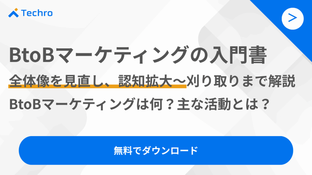 なお、テクロ株式会社では、BtoBマーケティングの施策についてまとめた資料「BtoBマーケティングの入門書」を無料配布しています。