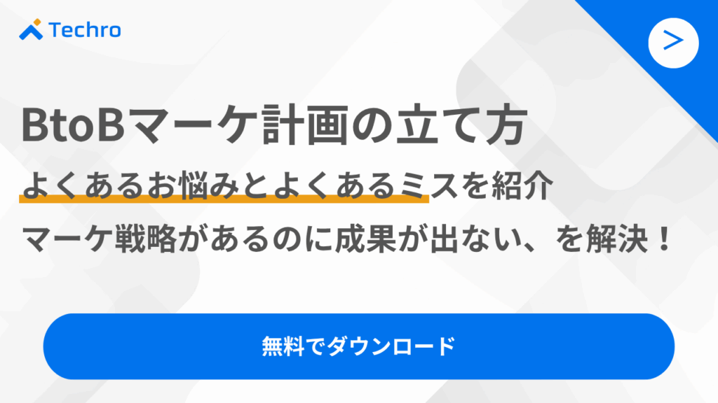 テクロ株式会社では、BtoBのコンテンツマーケティングでのリード獲得を支援しています。成功するBtoBマーケティング計画の立て方についての資料も無料で配布していますので、ぜひご活用ください。