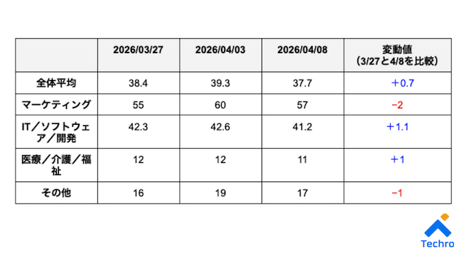ここではテクロが所有する独自データからまとめた、BtoBにおける各業界の順位変動の平均値や今回の傾向を解説します。