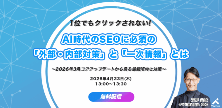 そこで本セミナーでは、コアアップデートの最新分析を基に、BtoBサイトが直面するゼロクリックや流入減少に対抗する「外部・内部対策」と「一次情報の記事への組み込み方」を徹底解説します。
